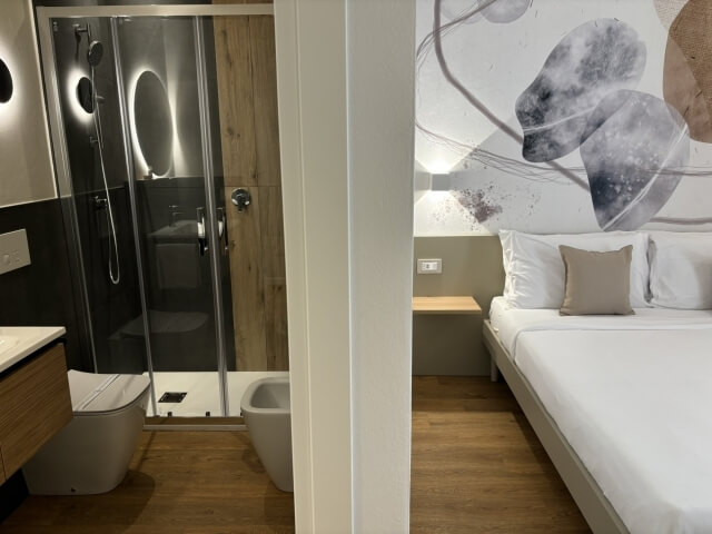 Tutte le camere sono impreziosite da stupendi effetti legno a pavimento e gli arredi sono su misura per ognuna di esse, accompagnati da un'illuminazione studiata per essere funzionale e di atmosfera al fine di definire ogni vano. Wi-Fi gratuito, Tv led di ultima generazione sono di serie per ogni tipologia di camera.